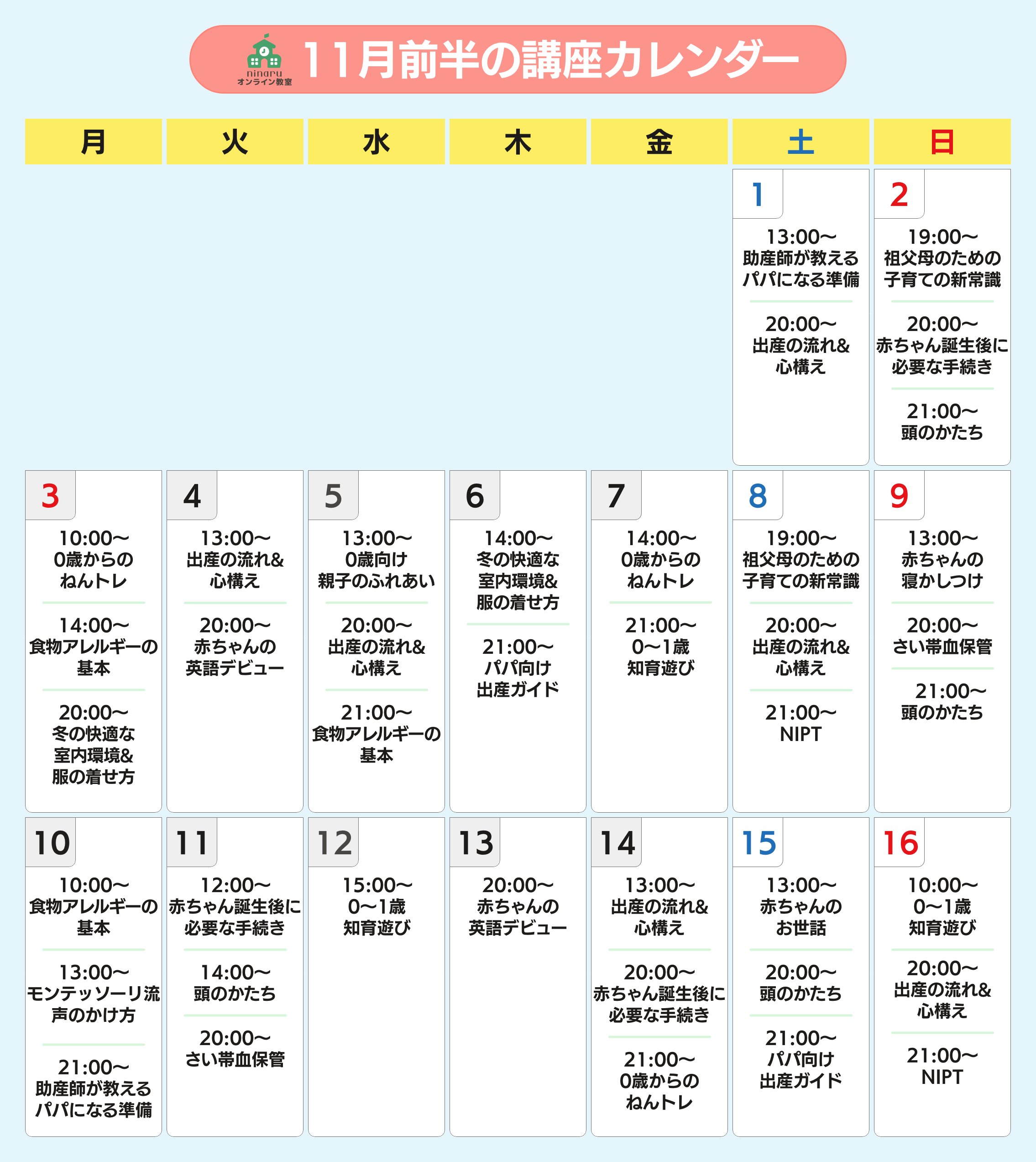 11月1日(土)13:00〜14:00 11月10日(月)21:00〜22:00 11月23日(日)13:00〜14:00 |