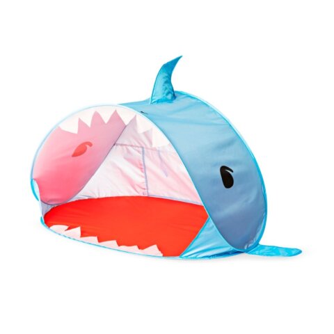 大きく開いたサメさんの口が印象的なテントが登場。UVカット機能付きなので、気になる日差しもしっかり遮ってくれます。