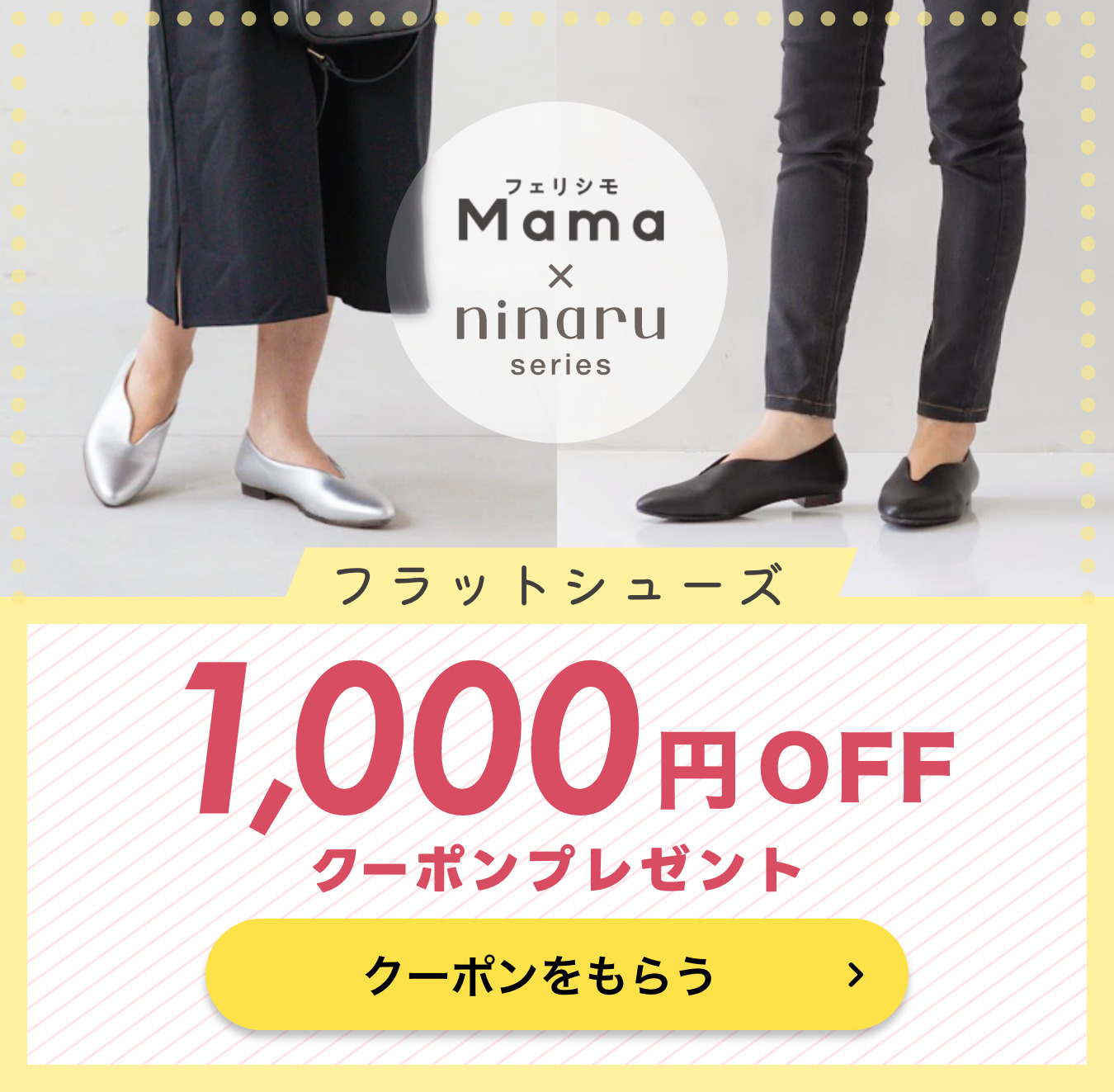 ご紹介したフラットシューズの価格は5,940円(税込)なので、クーポンを活用できますよ。お得な今、ぜひ下記からお買い物してくださいね。