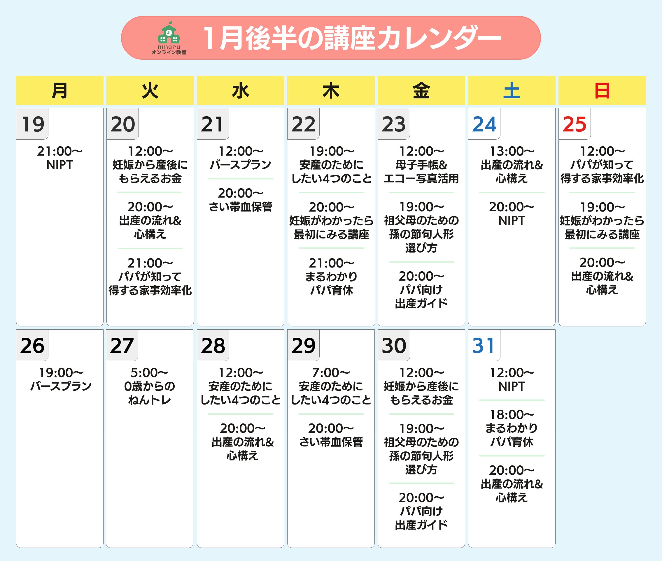 ninaruでは、さまざまな内容の無料オンライン講座を開催しています。夜の時間帯や土日に開催している講座もあるので、ぜひチェックしてみてくださいね。