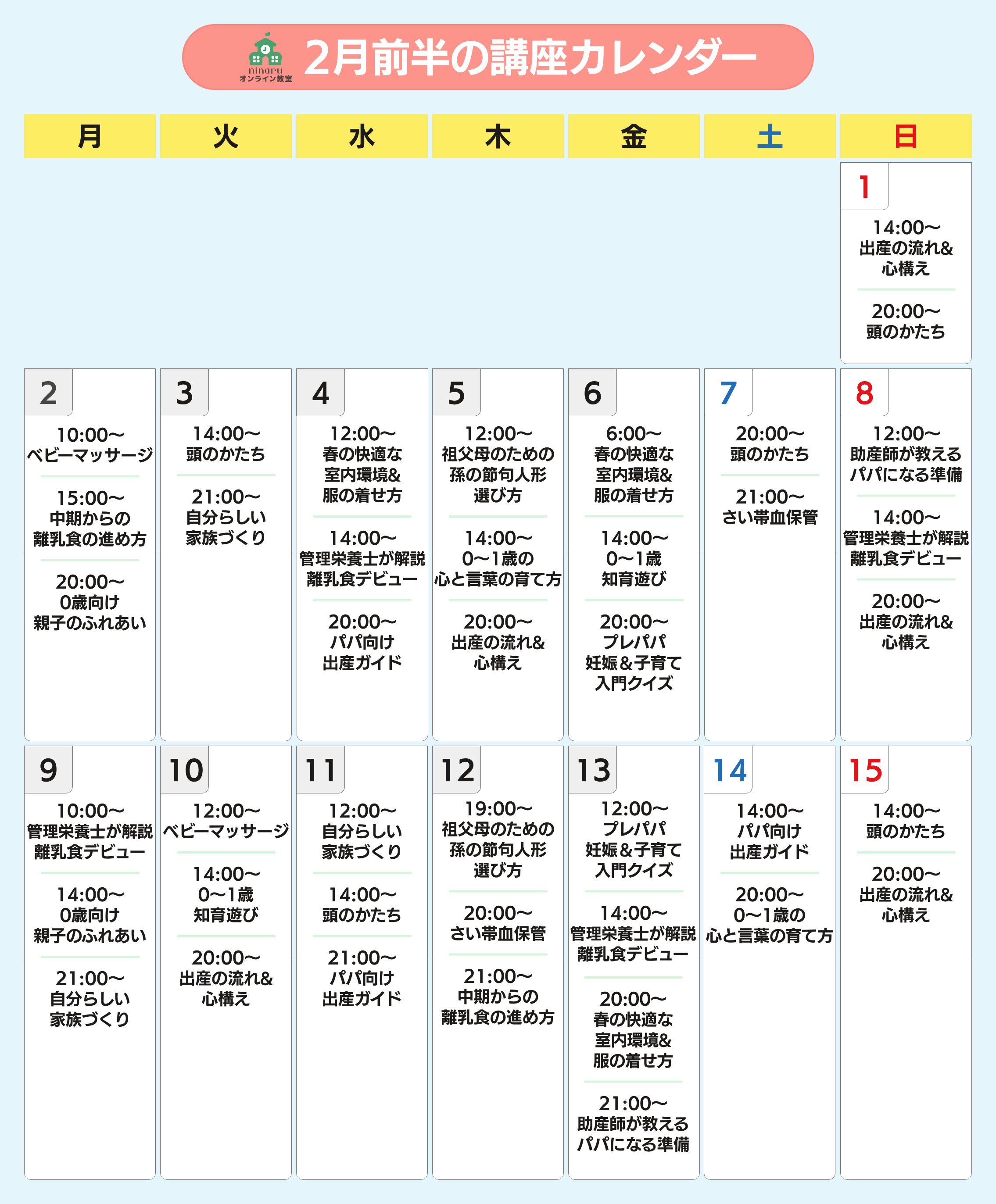 1月後半〜2月のninaruオンライン教室